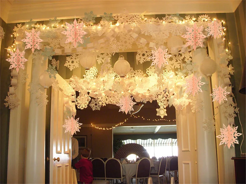 Frost Craft papieren sneeuwvlokdecoraties kreuken niet, hangen moeiteloos op en geven evenementen een chique, probleemloze stijl.